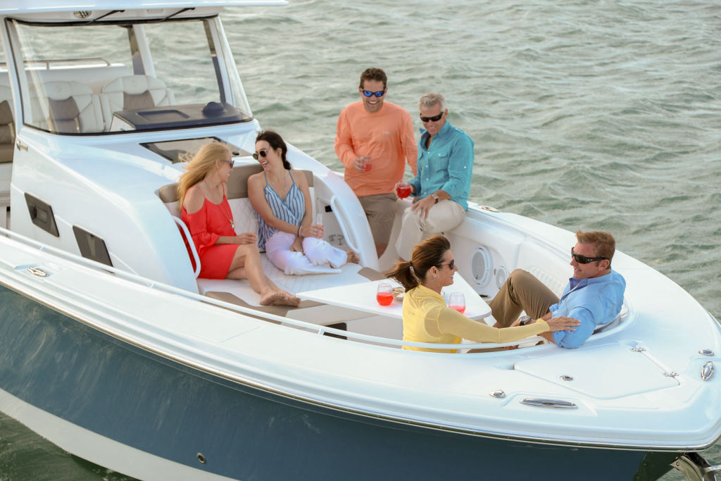 Consider the crossover (Edgewater CX models). Crossovers offer ample places to sit (in the bow, in the stern) and entertain, while still loving the open water in pursuit of the big fish.