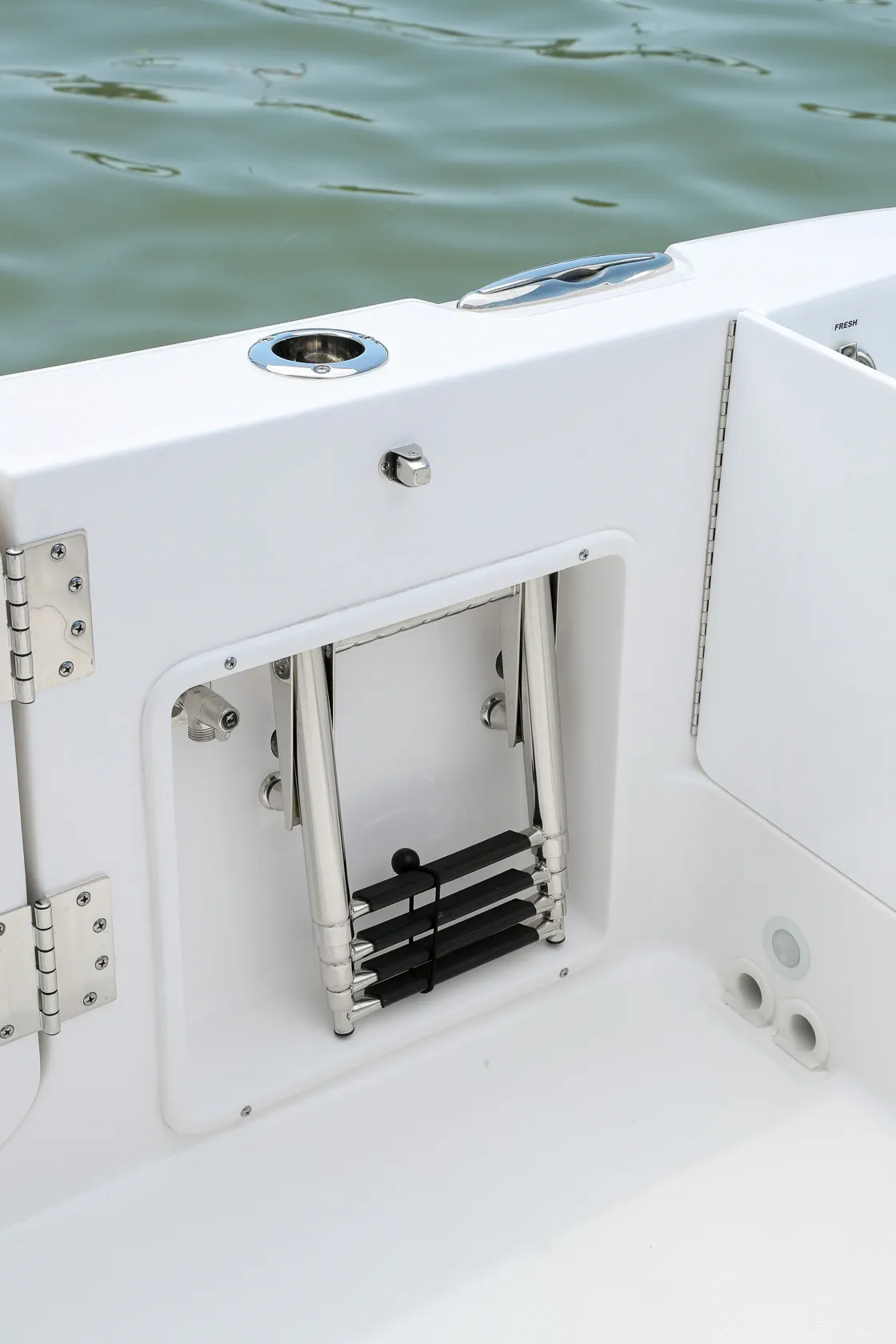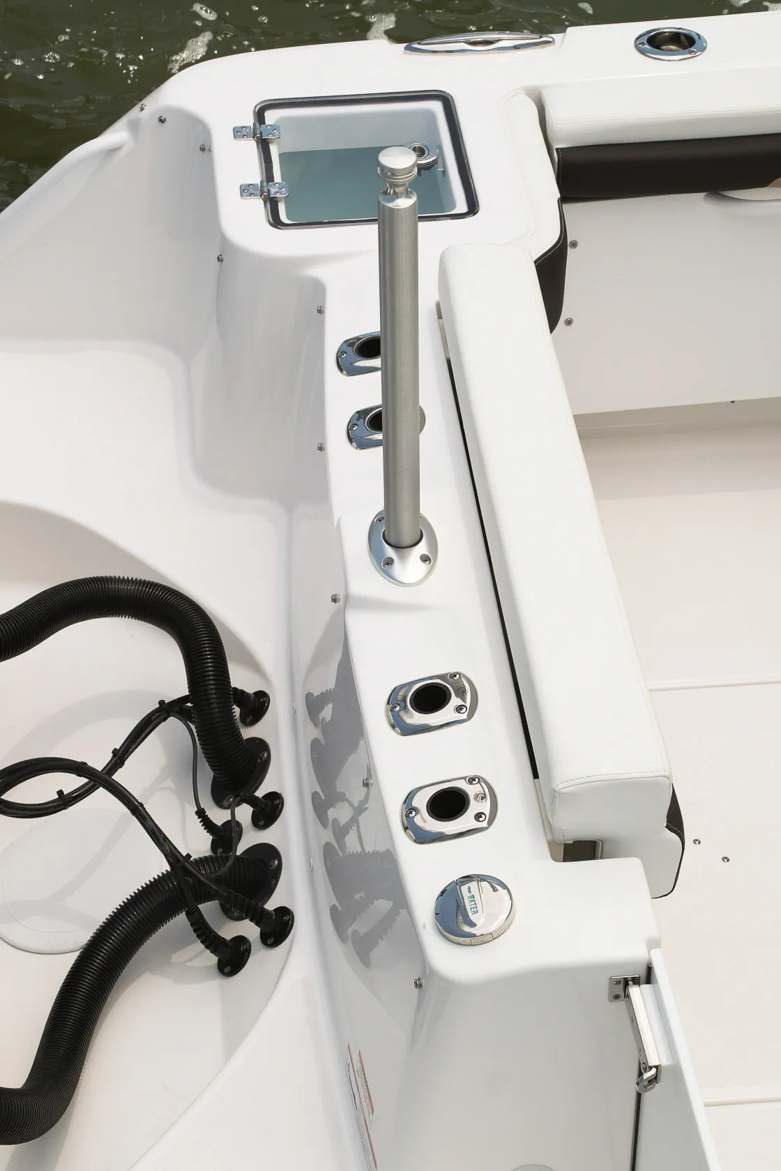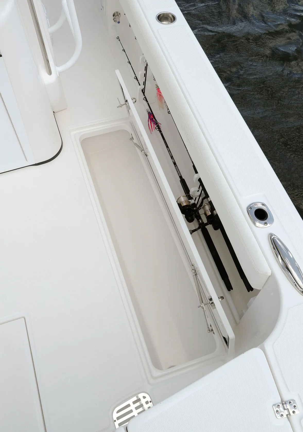 Ample rod holders, a 28-gallon transom baitwell, three insulated bow fishboxes/coolers, and raw water washdown ensure you have everything you need to bring home your catch.