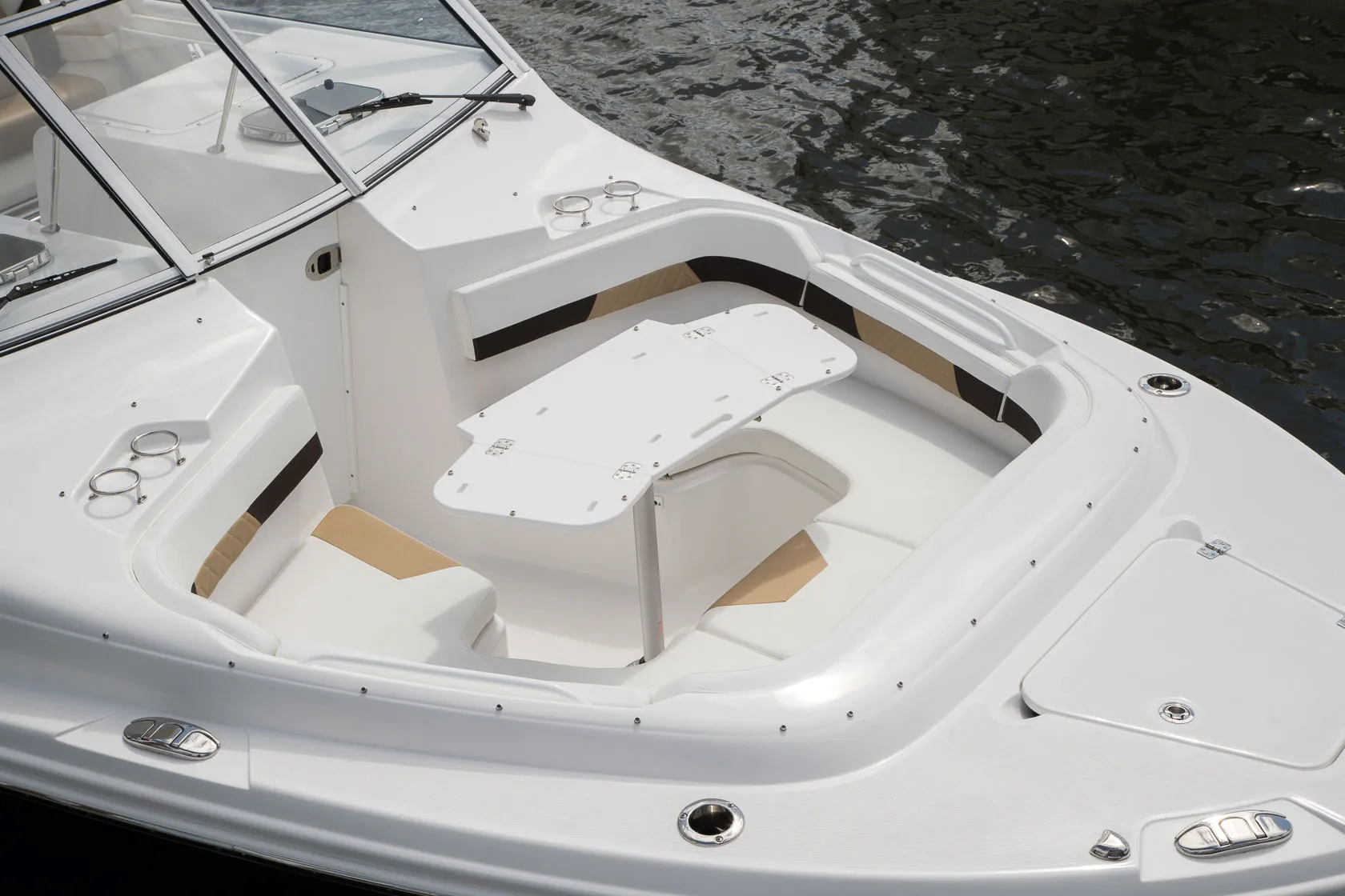 The 280CX isn't just about fishing; it's also designed for comfortable cruising and family fun. The deluxe helm seats with flip-up bolsters, starboard side ultra-lounger, and expansive bow lounge area with armrests and an optional table ensure everyone on board enjoys the ride.